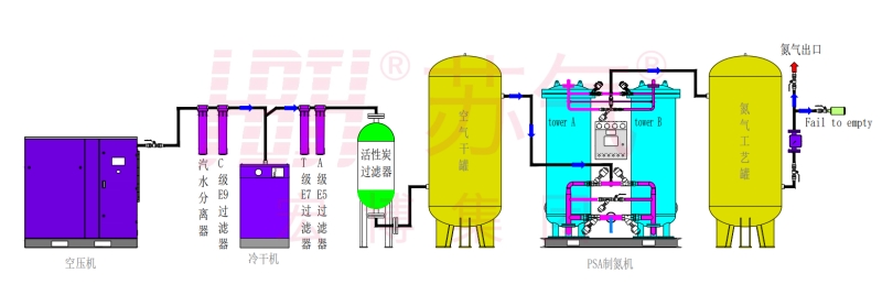 變壓吸附制氮裝置工藝流程圖