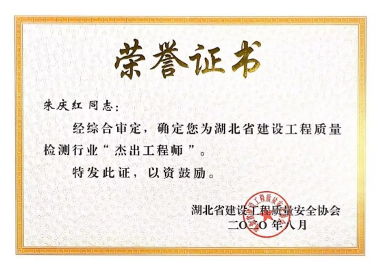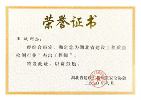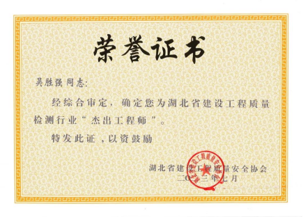 湖北省建設(shè)工程質(zhì)量檢測(cè)行業(yè)杰出工程師