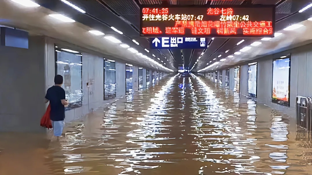 時間回到2019年6月21日,武漢經(jīng)歷了當(dāng)年24小時最大累計(jì)降雨量174.7毫米的暴雨,高新大道與光谷七路路口出現(xiàn)了嚴(yán)重漬水,路面最大漬水深度達(dá)到50cm,且有部分雨水通過有軌電車與地鐵換乘通道進(jìn)入地鐵站點(diǎn),嚴(yán)重影響周邊交通出行。