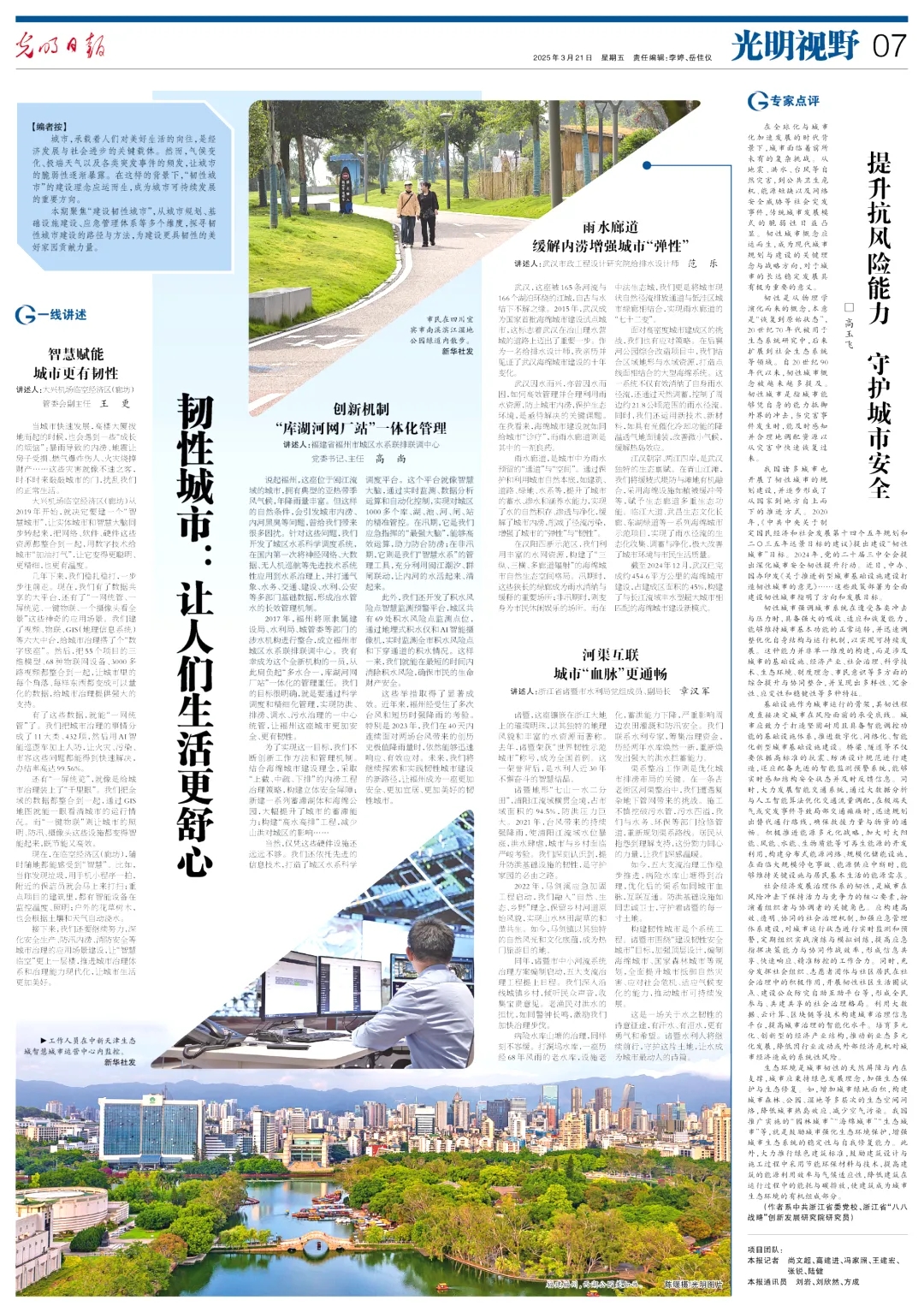 自武漢獲批國家首批海綿城市建設(shè)試點城市以來,武漢市政院一直致力于武漢海綿城市建設(shè),海綿城市從概念到試點,從試點到全域推進,從項目示范到系統(tǒng)治理,在城市內(nèi)澇防治、消除黑臭水體、保護城市生態(tài)、提升環(huán)境品質(zhì)等方面發(fā)揮了顯著作用,海綿城市建設(shè)讓家園更加韌性、宜居、智慧。3月21日,公司規(guī)劃研究事業(yè)部給排水主任工程師范樂受光明日報邀請,講述《雨水廊道 緩解內(nèi)澇增強城市“彈性”》。