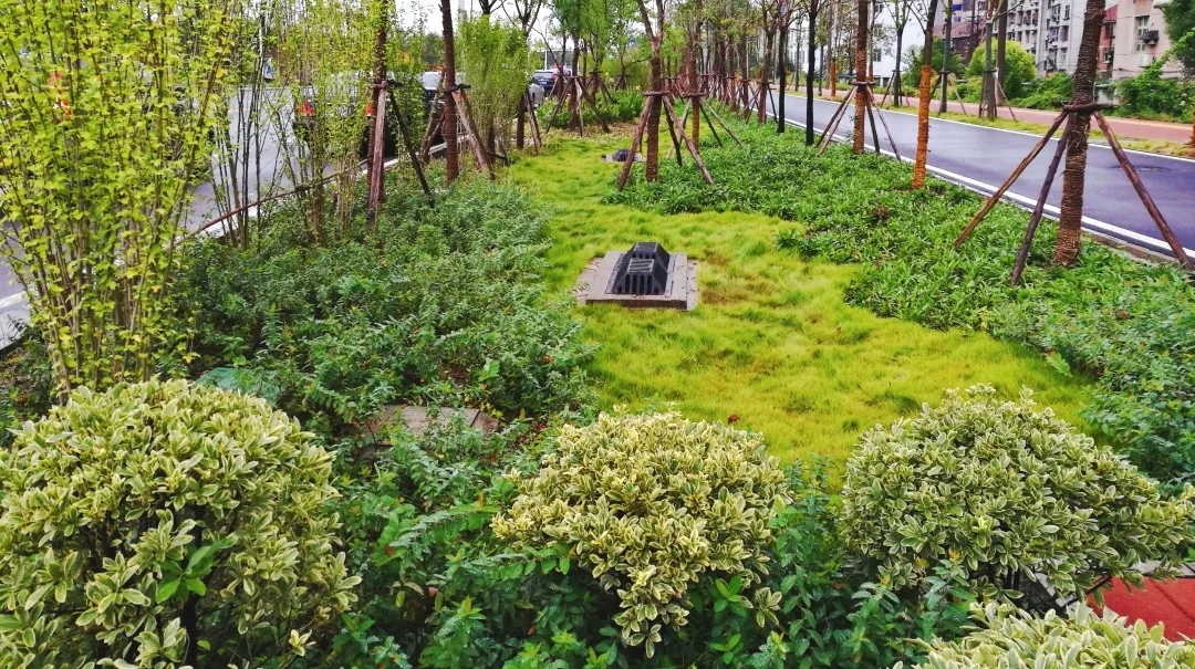 臨江大道機非隔離帶下沉式綠地