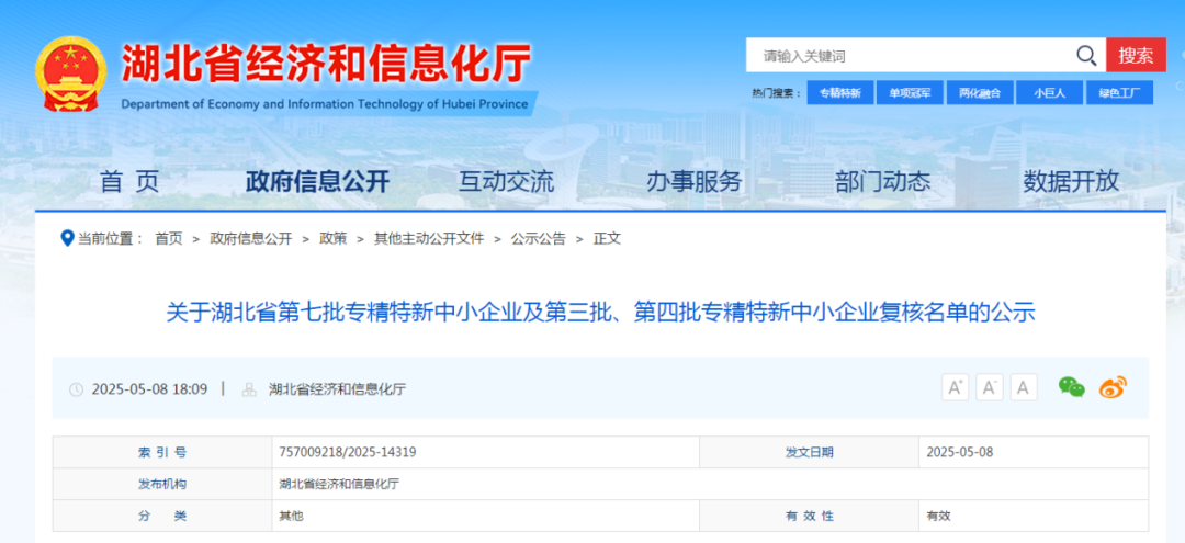 近日,湖北省經(jīng)濟(jì)和信息化廳官網(wǎng)正式公示了2025年度湖北省第七批“專精特新”中小企業(yè)名單,武漢市政院武漢路源工程質(zhì)量檢測有限公司(以下簡稱路源檢測公司)成功通過評審,躋身省級“專精特新”企業(yè)行列。