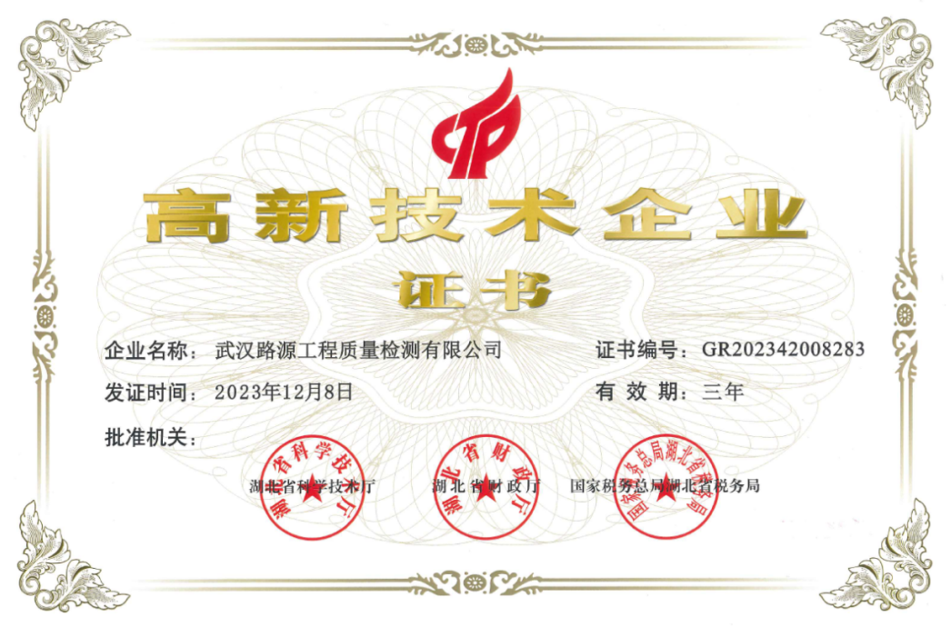 2023年,再次順利通過湖北省“高新技術(shù)企業(yè)”復(fù)審認(rèn)定,這一成就充分展示了路源檢測公司在科技創(chuàng)新、科技研發(fā)、知識產(chǎn)權(quán)及產(chǎn)品服務(wù)等方面的綜合競爭力。