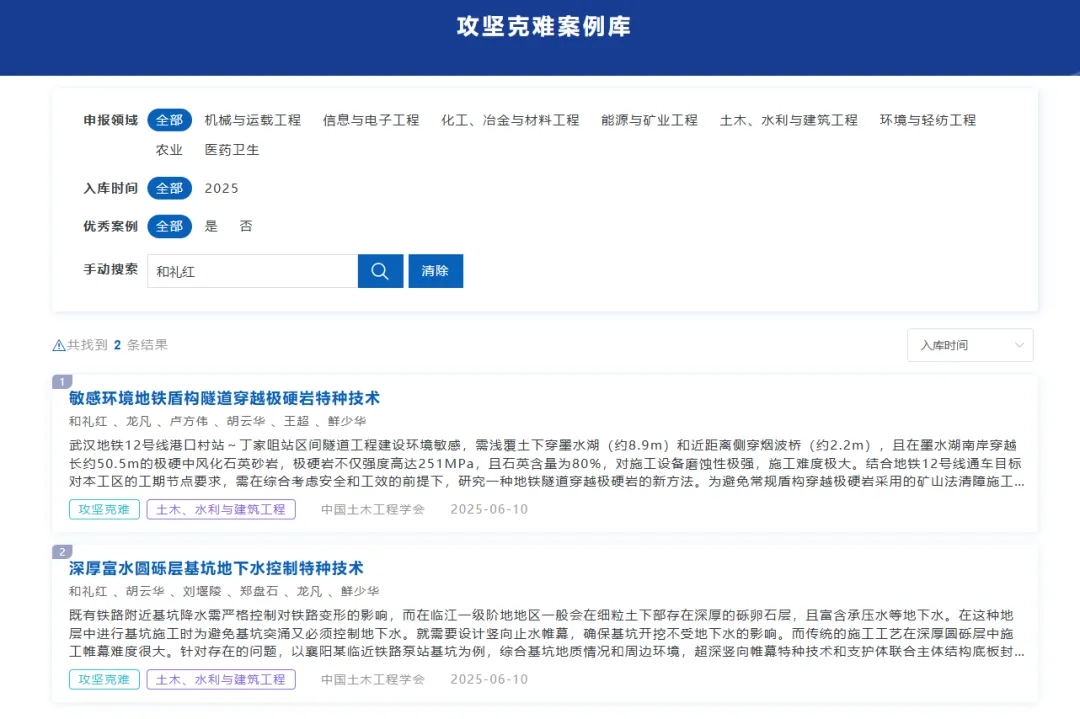 ? ? ?2025年6月4日,中國科協(xié)發(fā)布了《關于企業(yè)科技工作者評價案例成果征集遴選活動結(jié)果的通知》,公布了《企業(yè)科技工作者評價案例庫》,其中攻堅克難案例843項、成果轉(zhuǎn)化案例726項。武漢市政院巖土博士創(chuàng)新工作室申報的“敏感環(huán)境地鐵盾構隧道穿越極硬巖特種技術”、“深厚富水圓礫層基坑地下水控制特種技術”兩項攻堅克難案例與技術均成功入庫。