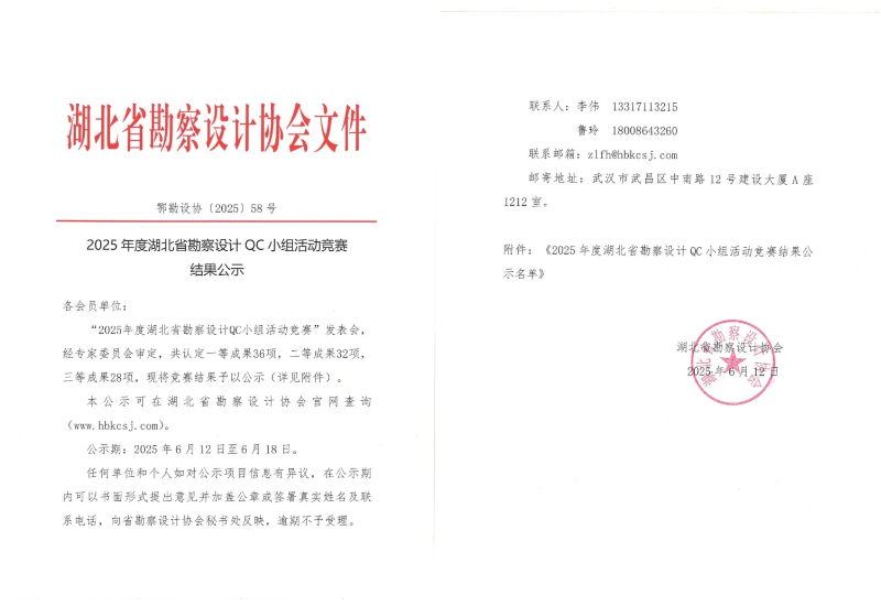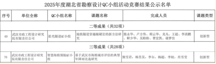 武漢市政院再傳捷報!近日,湖北省勘察設計協(xié)會組織召開的“2025 年度湖北省勘察設計QC小組活動競賽”中,武漢市政院選送的兩個QC小組表現(xiàn)亮眼:地空事業(yè)部"拾光隧道QC小組"憑借創(chuàng)新成果斬獲競賽二等獎,規(guī)劃研究事業(yè)部"智慧海綿領航QC小組"榮獲三等獎佳績。
