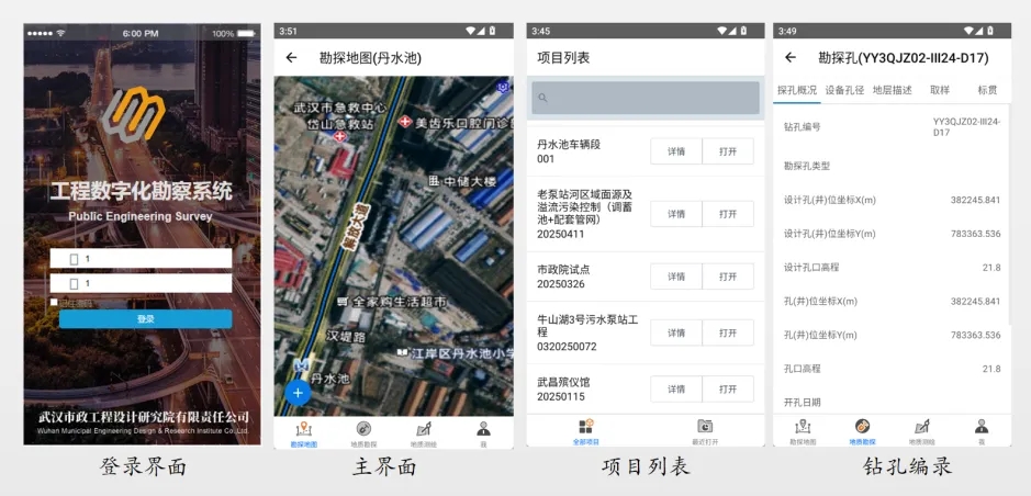公司依托數(shù)字化轉(zhuǎn)型戰(zhàn)略,自主研發(fā)的市政工程數(shù)字化勘察系統(tǒng)實(shí)現(xiàn)全流程技術(shù)突破:外業(yè)定位、安全管控、測(cè)試記錄、編錄、巖芯拍照、數(shù)據(jù)上傳、外業(yè)監(jiān)管等全流程無(wú)紙化操作,既踐行綠色低碳理念,又讓勘測(cè)數(shù)據(jù)采集更高效精準(zhǔn),顯著提升勘察工作效能。