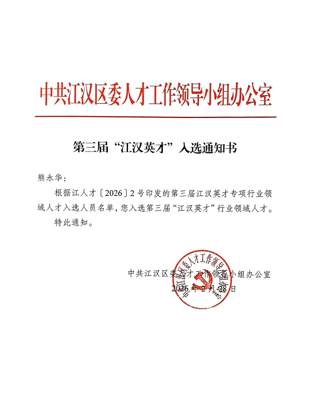熊永華同志榮獲江漢英才城建領(lǐng)域?qū)m椚瞬欧Q號