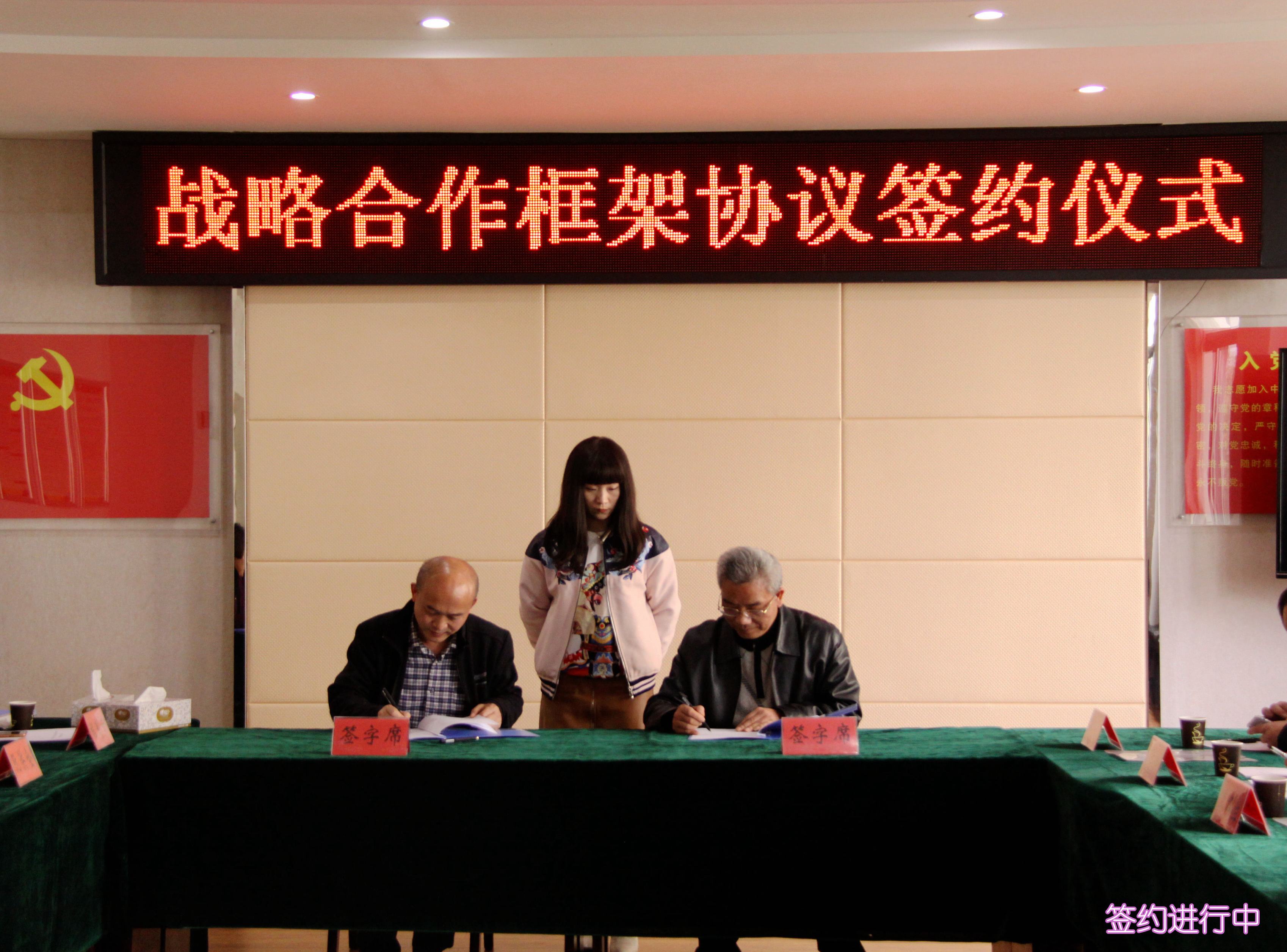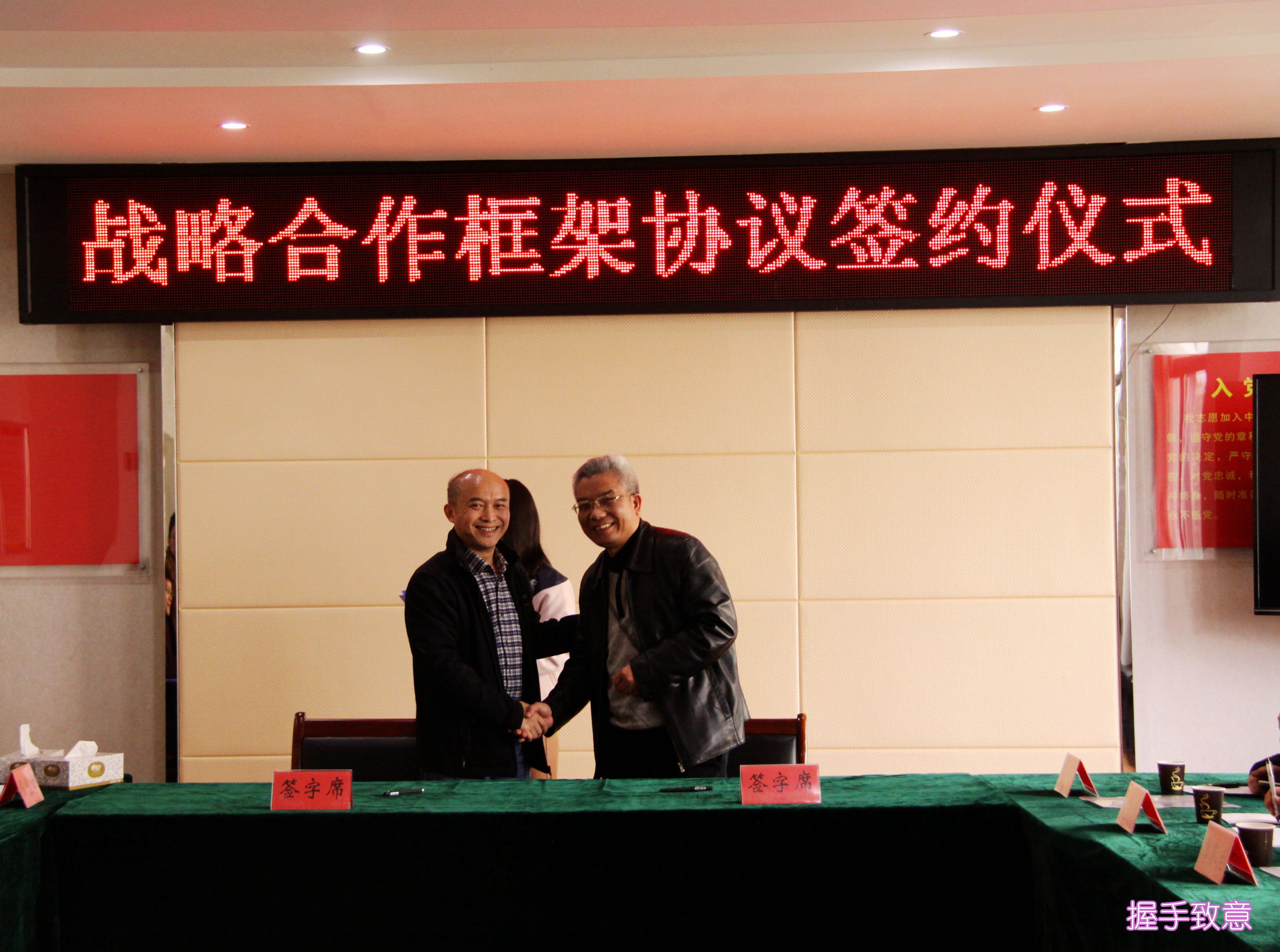 ??? 周俊與駱進分別在戰(zhàn)略合作協(xié)議上簽字,并合影留念。