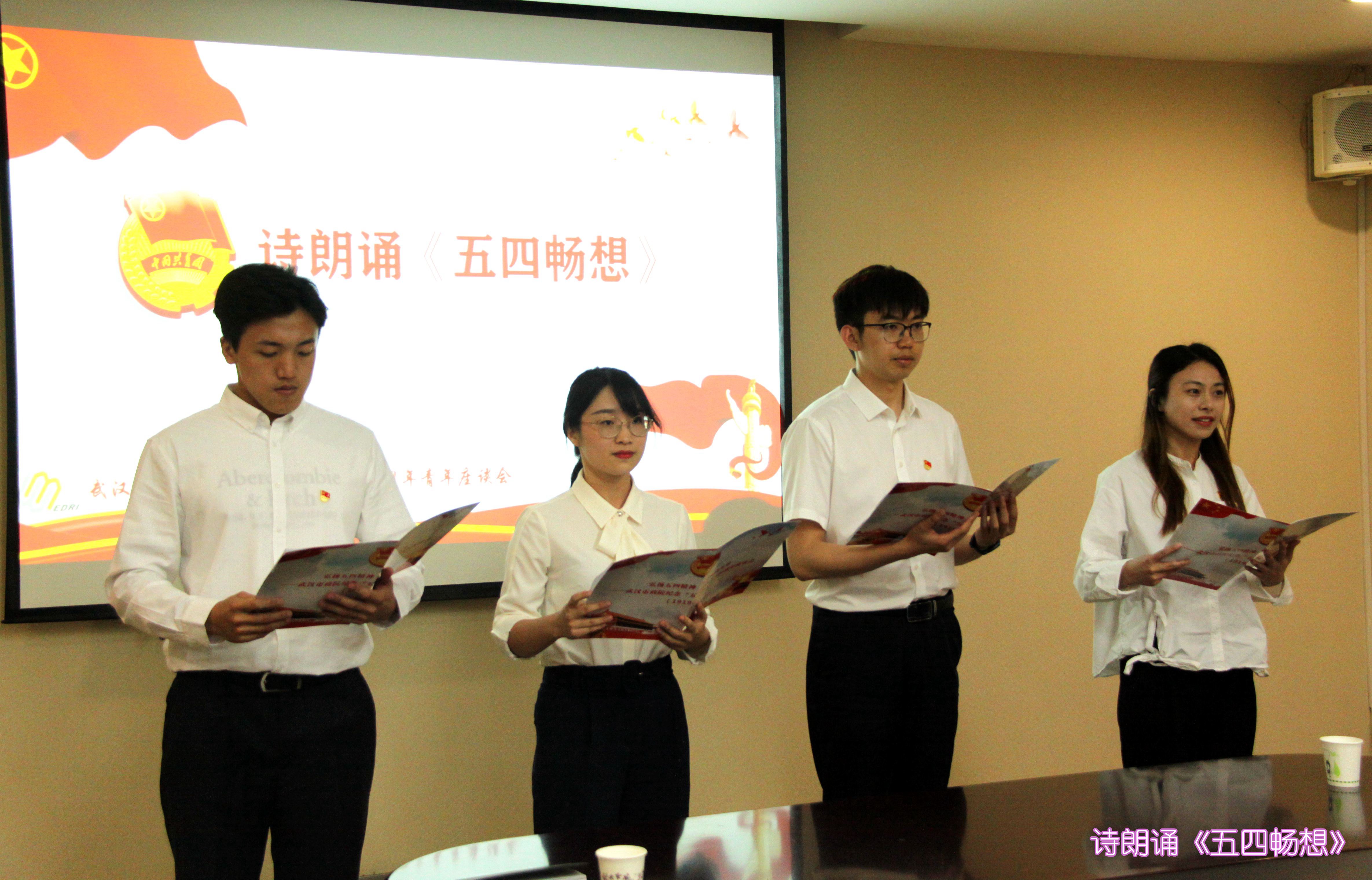 ??? 會(huì)議在雄壯的國歌聲中拉開序幕,全體參會(huì)人員肅立會(huì)場(chǎng),神情莊重,聲音洪亮,用歌聲表達(dá)了對(duì)祖國的熱愛。隨后,四名青年員工為大家獻(xiàn)上了詩朗誦《五四暢想》,在時(shí)而婉轉(zhuǎn)時(shí)而激昂的語調(diào)中,把大家的思緒拉回了一百年前那場(chǎng)改變中國命運(yùn)的偉大事件,“中國的土地可以征服而不可以斷送”“中國的人民可以殺戮而不可以低頭”,如此激昂的話語,更是讓大家心潮澎湃,熱血沸騰。