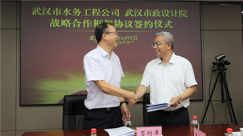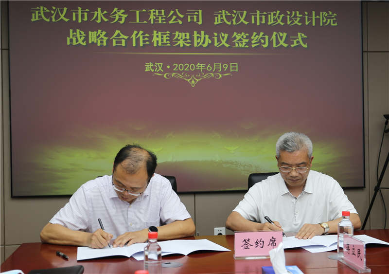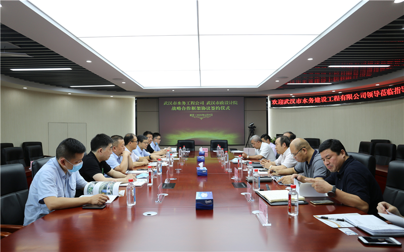 2020年6月9日下午,公司與武漢市水務(wù)建設(shè)工程有限公司簽訂戰(zhàn)略合作框架協(xié)議,雙方將依托各自優(yōu)勢(shì)資源,在城市水務(wù)建設(shè)、市政基礎(chǔ)設(shè)施建設(shè)等多領(lǐng)域展開(kāi)深度合作。武漢市水務(wù)建設(shè)工程有限公司經(jīng)理程飛、黨委書記陳軍、副經(jīng)理宋萍森,公司董事長(zhǎng)武興治、總經(jīng)理姚華、副總經(jīng)理周俊等出席了簽約儀式。