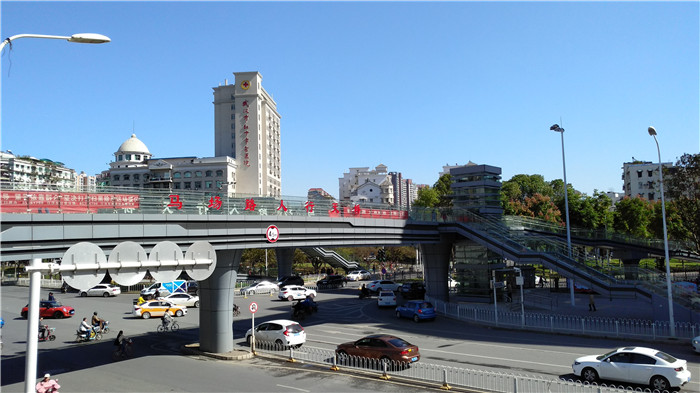 “同濟(jì)健康天橋”,被市民親切的稱為“英雄橋”。主橋橫跨交通繁忙的解放大道,北接同濟(jì)醫(yī)院門診主樓,南連同濟(jì)醫(yī)院生殖中心。天橋主梁全長(zhǎng)55.2米,天橋兩端共設(shè)計(jì)4個(gè)出入口,安裝4部自動(dòng)扶梯,并設(shè)置了1:2的梯道。從空中俯瞰,呈現(xiàn)一個(gè)“工”字。