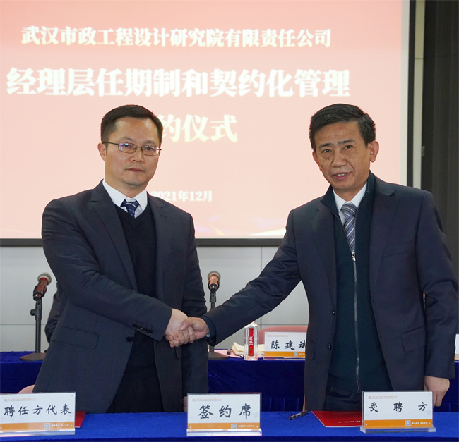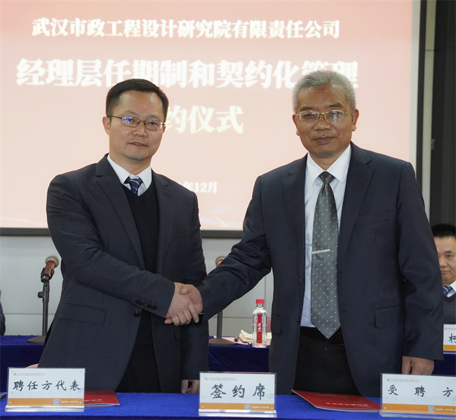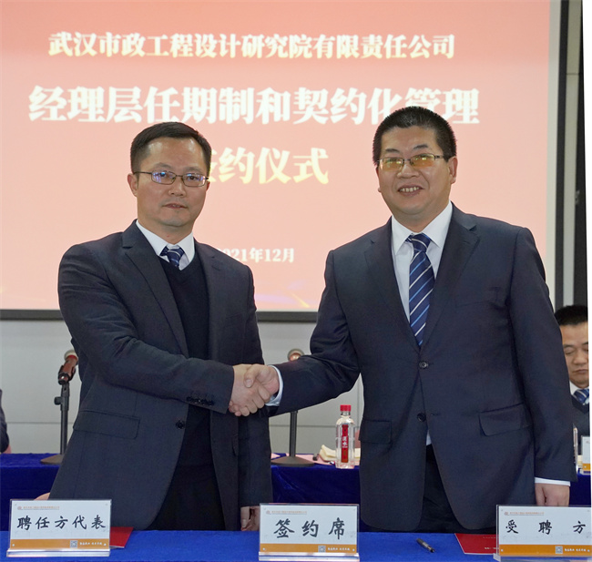 為貫徹落實黨中央、國務(wù)院關(guān)于實施國企改革三年行動的重大決策部署,落實市城投集團公司關(guān)于加快推進所屬企業(yè)經(jīng)理層任期制和契約化管理的工作要求,12月20日下午,武漢市政設(shè)計院成功舉行公司及所屬企業(yè)經(jīng)理層任期制和契約化管理簽約儀式,標志著武漢市政設(shè)計院在切實抓好國企改革三年行動和三項制度改革工作中邁出關(guān)鍵一步。公司領(lǐng)導(dǎo)、總經(jīng)理助理、中層副職以上行政管理人員參加簽約儀式。