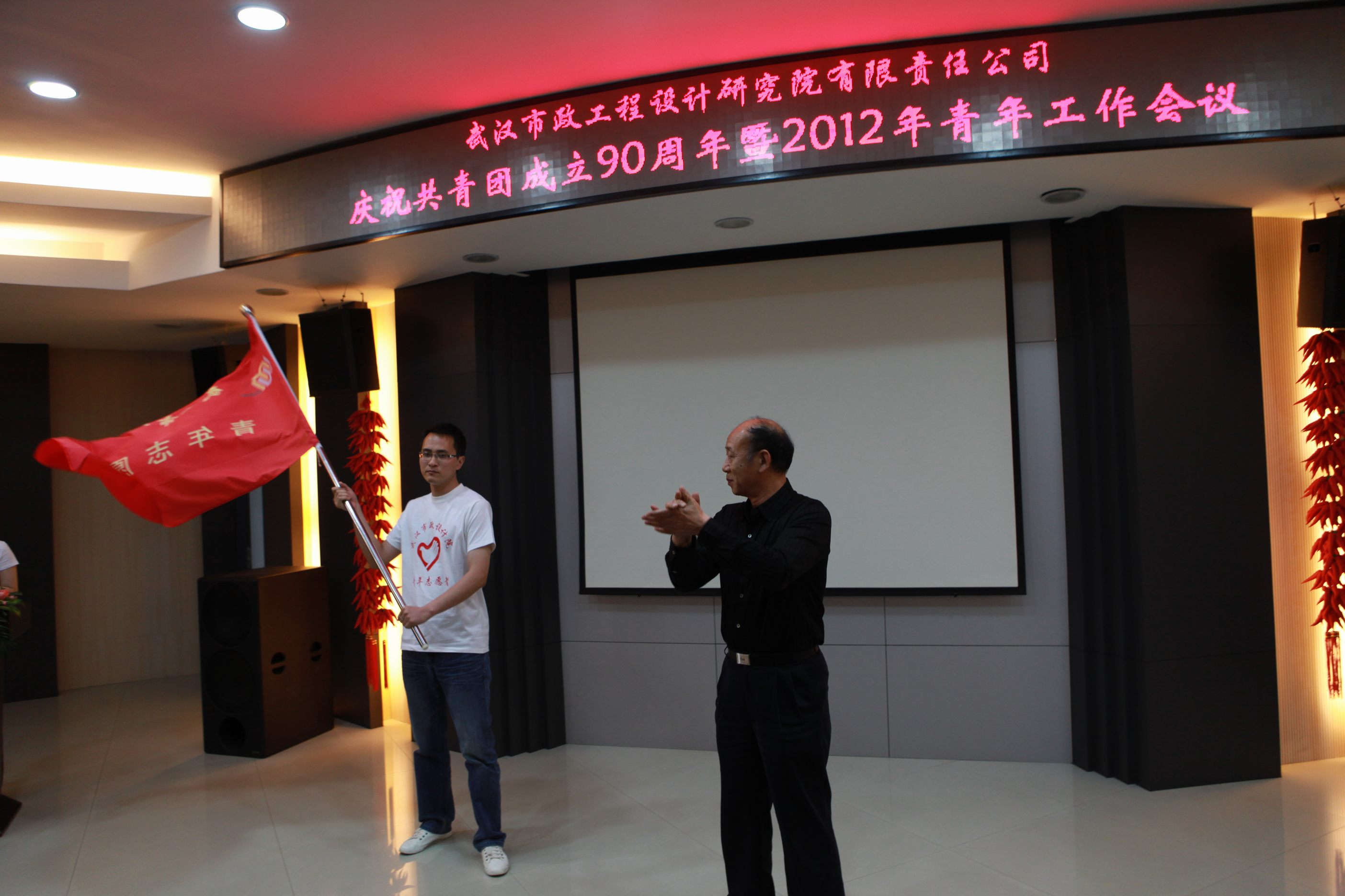 ??? 4月27日下午,公司在二樓會議室召開慶祝中國共青團(tuán)成立90周年暨2012年青年工作會議。市城建委黨組副書記、副主任熊明亮,共青團(tuán)武漢市委副書記魏靜應(yīng)邀出席,公司領(lǐng)導(dǎo)參加了本次會議。