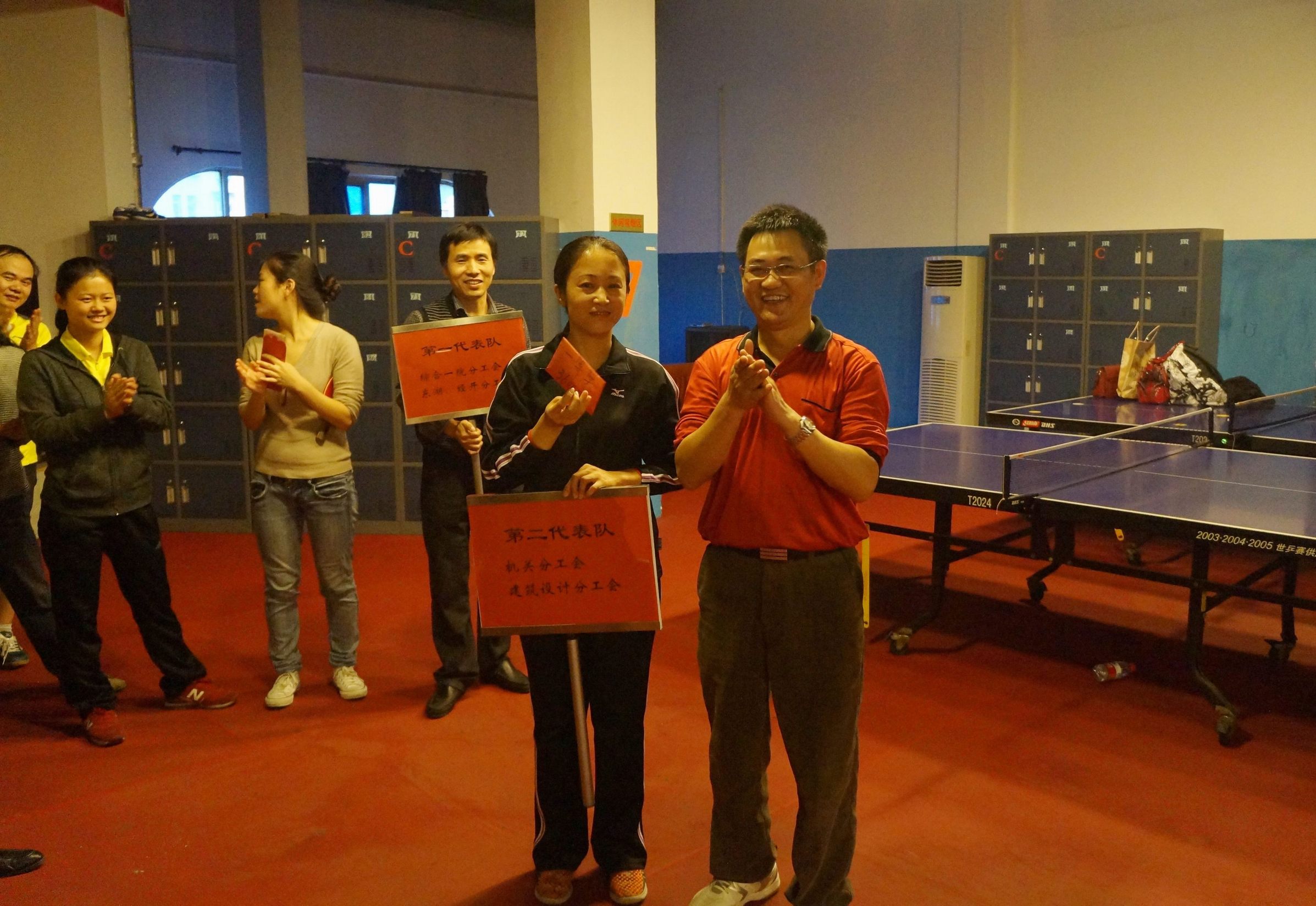 ??? 經(jīng)過激烈的角逐,由姚華總經(jīng)理領(lǐng)銜的機(jī)關(guān)分工會、建筑設(shè)計(jì)分公司分工代表隊(duì)獲得了冠軍;蔣樂副總經(jīng)理兼總工程師帶隊(duì)的綜合設(shè)計(jì)一院和東湖設(shè)計(jì)院、經(jīng)開設(shè)計(jì)院聯(lián)合分工會代表隊(duì)獲得了亞軍。公司領(lǐng)導(dǎo)為獲獎代表隊(duì)頒獎并合影留念。