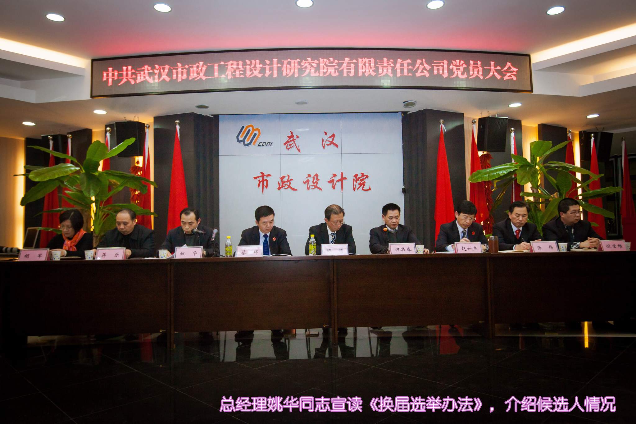 ??? 1月23日,公司召開黨員大會,選舉產(chǎn)生了新一屆中共武漢市政工程設計研究院有限責任公司委員會、紀律檢查委員會。武漢市城鄉(xiāng)建設委員會機關黨委專職副書記陳耕同志到會指導,公司200余名黨員參會,會議由公司董事長、黨委副書記柯昌春同志主持。