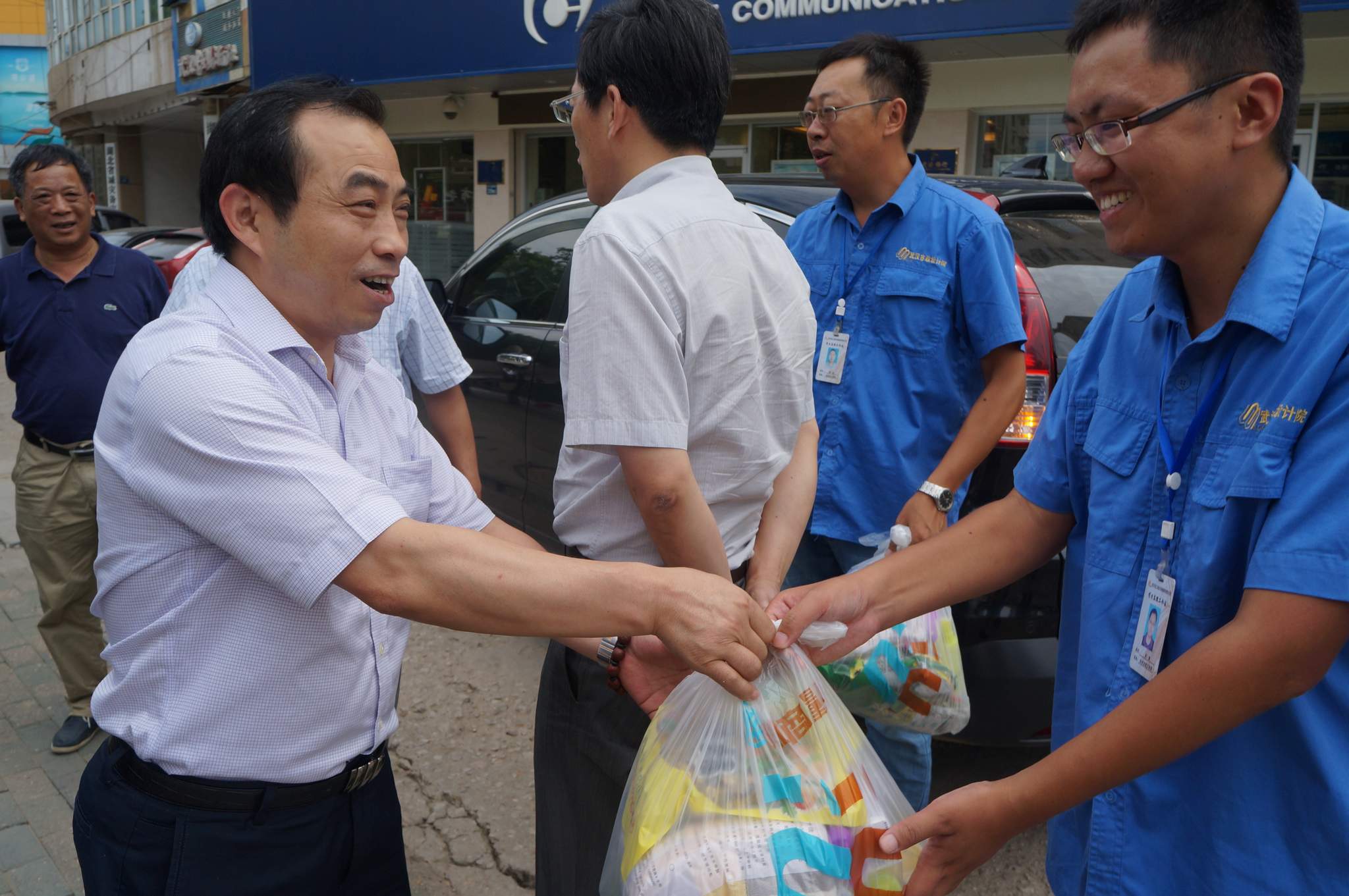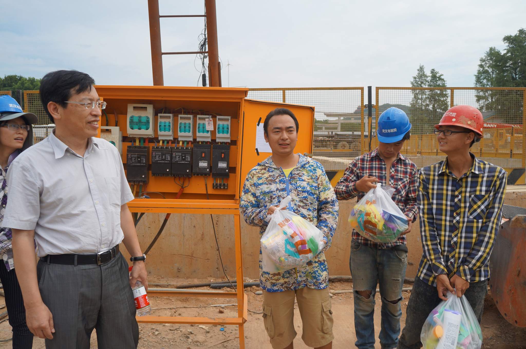 ??? 8月5日,公司總經(jīng)理姚華、副總經(jīng)理趙世杰帶領(lǐng)綜合辦公室、監(jiān)理公司、勘測設(shè)計(jì)院等部門負(fù)責(zé)人,對(duì)部分工地進(jìn)行了走訪慰問,為高溫下堅(jiān)持工作的一線員工送上一份清涼。