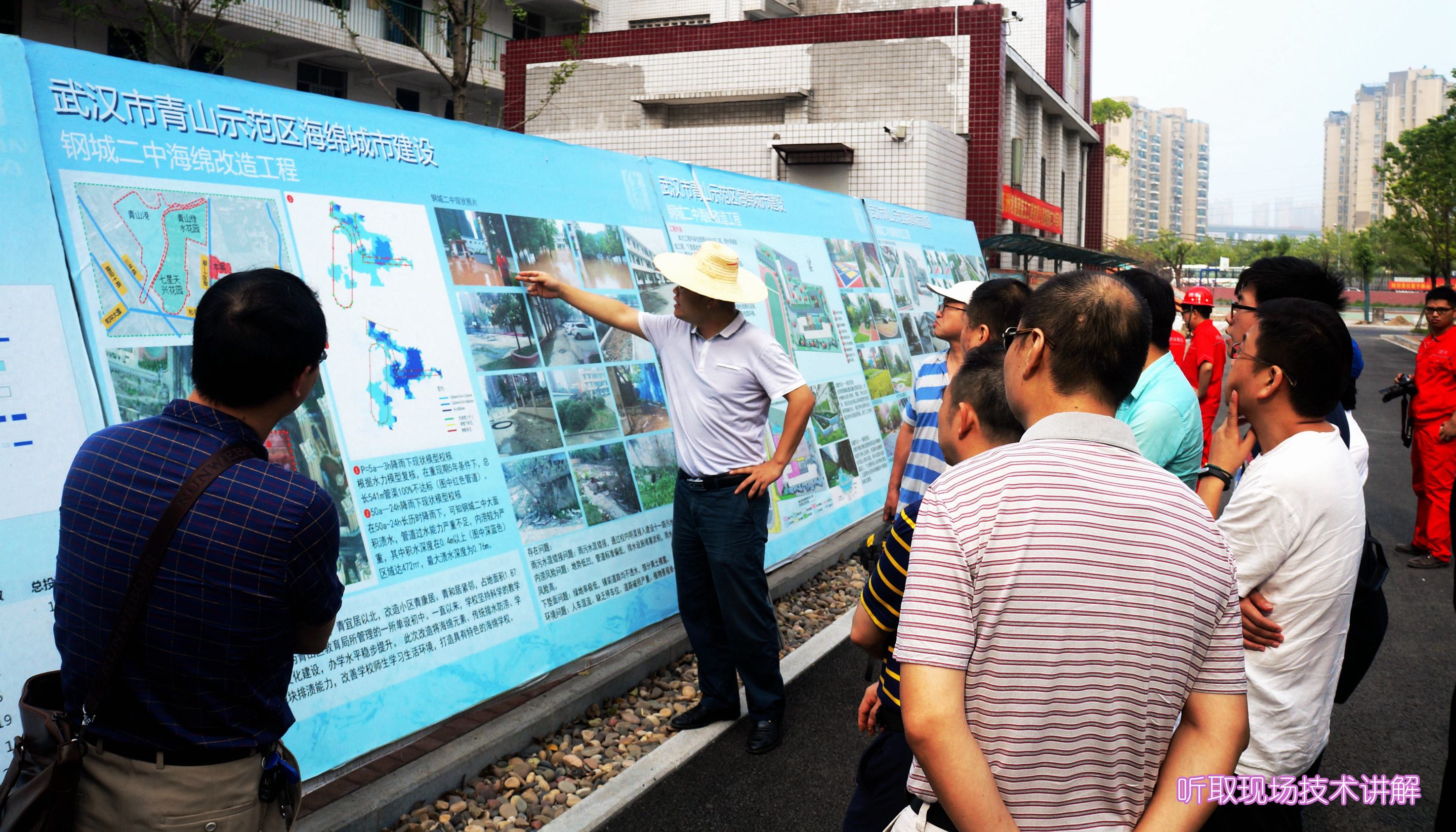 ??? 早上7點(diǎn)30分,參觀人員集中乘車(chē),先后前往青山海綿城市建設(shè)示范區(qū)和四新海綿城市建設(shè)示范區(qū)進(jìn)行實(shí)地參觀考察,聽(tīng)取了公司主要設(shè)計(jì)人員關(guān)于海綿城市設(shè)計(jì)理念的介紹和取得的實(shí)際效果,并邀請(qǐng)施工單位負(fù)責(zé)人講解了海綿城市項(xiàng)目在施工中運(yùn)用的技術(shù)和材料。參觀人員邊看邊聽(tīng)邊記,詳細(xì)了解了海綿城市項(xiàng)目在設(shè)計(jì)、施工中的特點(diǎn)和需要注意的問(wèn)題。
