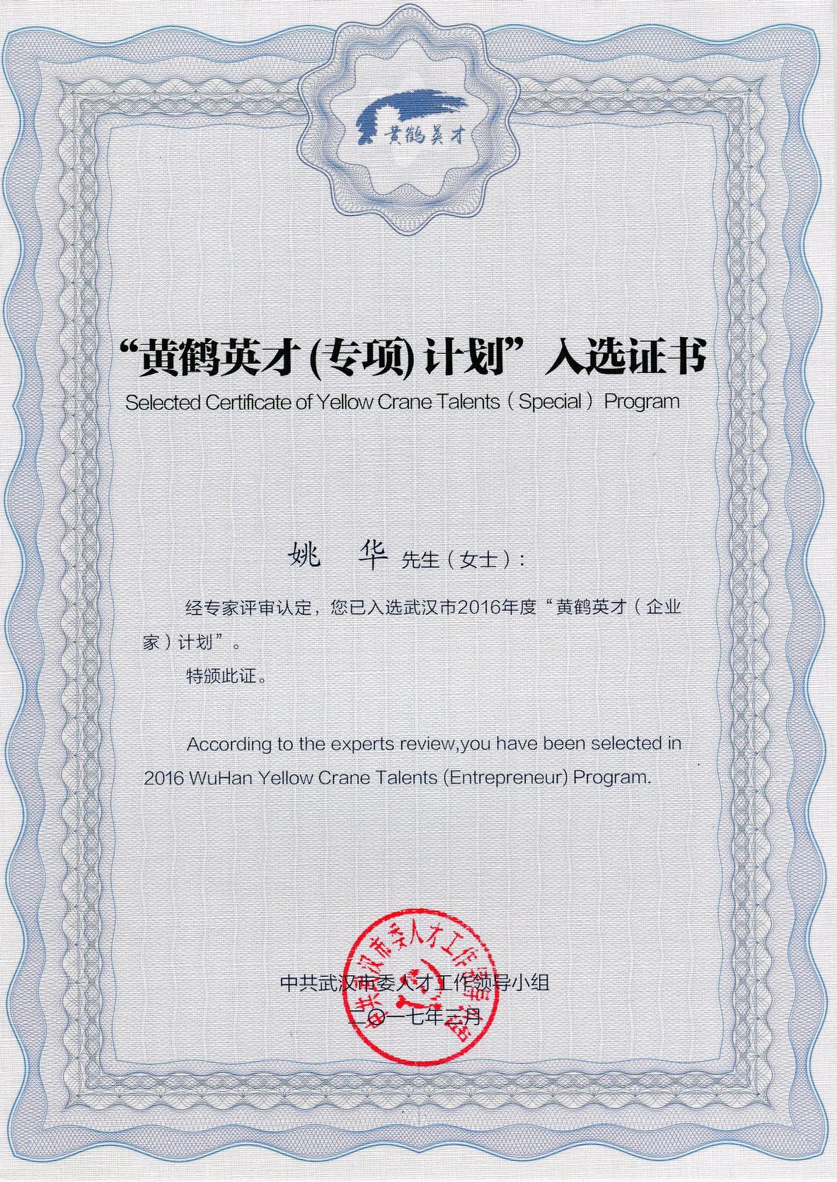 ??? “黃鶴英才(企業(yè)家)計(jì)劃”是為了鼓勵(lì)和表彰具有戰(zhàn)略思維、富于創(chuàng)新精神的企業(yè)領(lǐng)軍人物,姚華同志作為公司總經(jīng)理,善于創(chuàng)造性地開(kāi)展工作,在他的領(lǐng)導(dǎo)下,公司經(jīng)營(yíng)業(yè)績(jī)連創(chuàng)新高,業(yè)務(wù)類(lèi)型日趨豐富,市場(chǎng)范圍逐步擴(kuò)大,企業(yè)管理效能穩(wěn)步提升,在企業(yè)管理崗位上做出了突出成績(jī)。