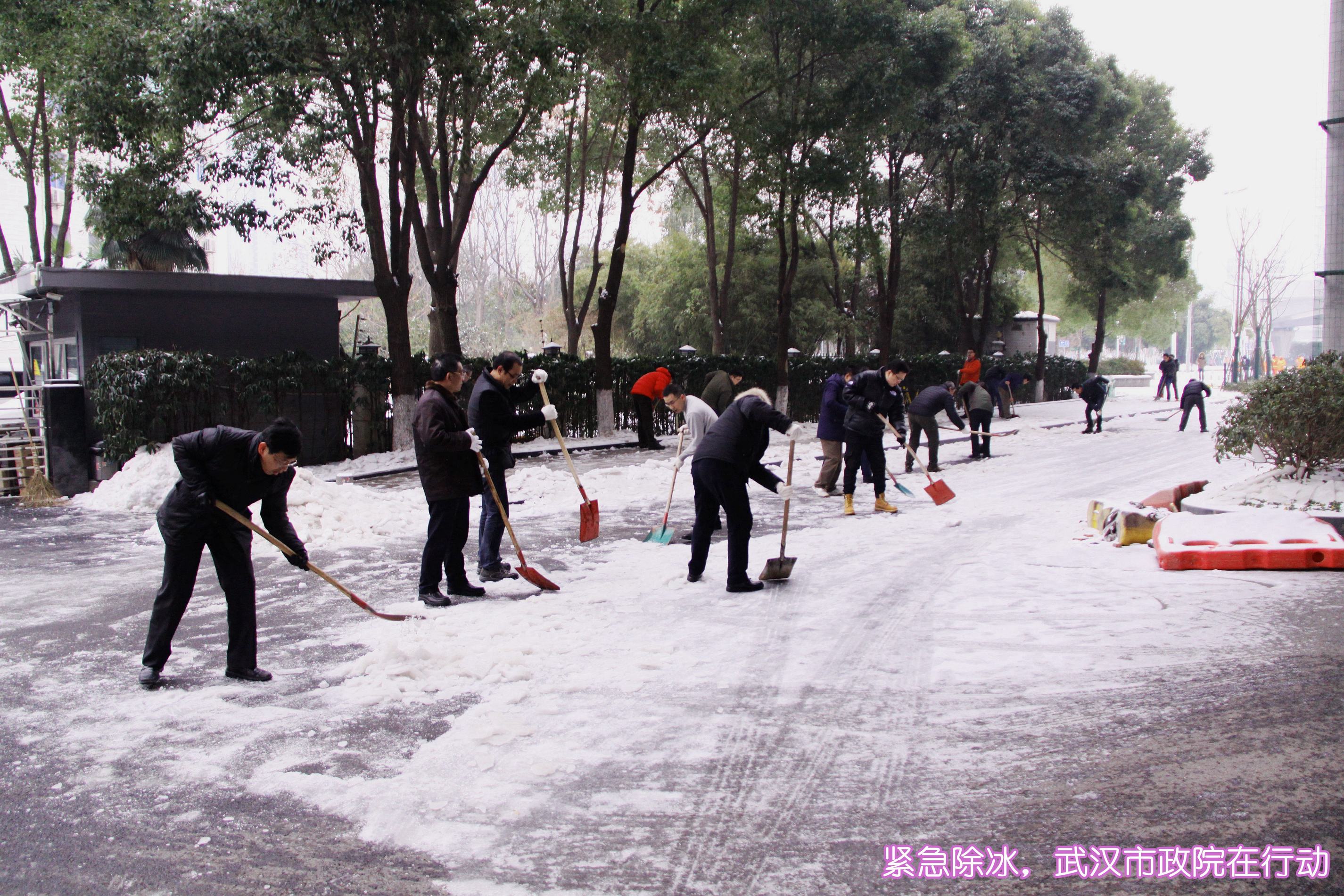 ??? 1月28日,武漢市政院的全體員工響應(yīng)市政府緊急通知的要求,放棄了周末休息時(shí)間,一大早便紛紛趕到公司,投入到抗擊冰雪保暢通的行動(dòng)中。由于連日來(lái)江城氣溫較低,雪落到路面上已經(jīng)形成了厚厚的冰層,為員工們鏟除冰雪帶來(lái)了極大的難度。在公司領(lǐng)導(dǎo)的帶領(lǐng)下,大家有的拿起鐵鍬鏟除冰層,有的拿著鋤鎬,敲碎路面上的堅(jiān)冰,有的則拿起掃帚,掃凈路面的冰雪殘?jiān)K^人多力量大,不多時(shí),公司周邊道路及人行道上的冰雪便被鏟除干凈。