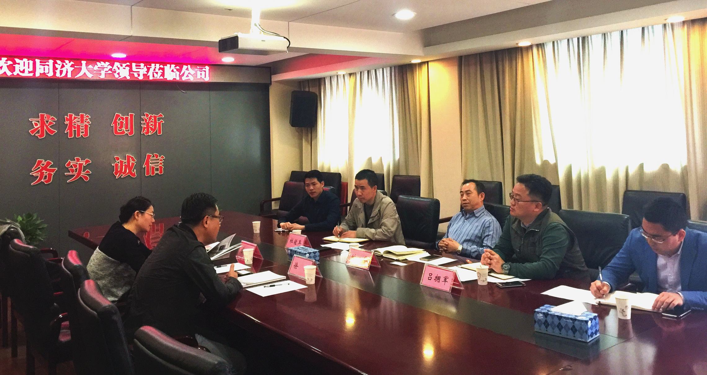 ??? 4月18日上午,同濟(jì)大學(xué)就業(yè)辦主任徐迅、副主任方雅靜一行蒞臨公司走訪交流,總經(jīng)理姚華、綜合辦公室主任呂擁軍,同濟(jì)大學(xué)優(yōu)秀畢業(yè)生代表杜佐兵、胡明,以及相關(guān)工作人員參加了座談。