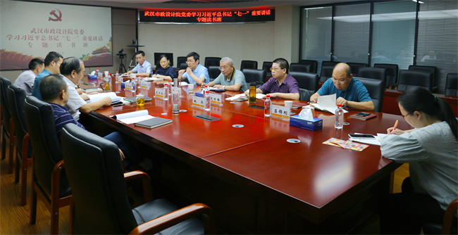 按照市委、市黨史學習教育辦公室、市城投集團公司黨委的要求,2021年7月29日,武漢市政設計院黨委組織舉辦學習習近平總書記“七一”重要講話專題讀書班。